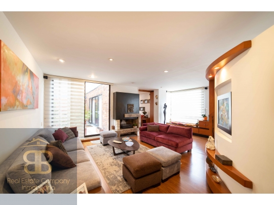 El apartamento cuenta con una biblioteca o estudio independiente, perfecta para trabajar desde casa o como espacio de lectura. La cocina integral se destaca por su diseño moderno, buena iluminación y amplios espacios de almacenamiento, complementada por una zona de lavandería independiente. La sala ofrece un ambiente cálido y acogedor gracias a su chimenea, ideal para disfrutar en familia o con amigos, mientras que los pisos en madera aportan elegancia y calidez a todos los espacios.