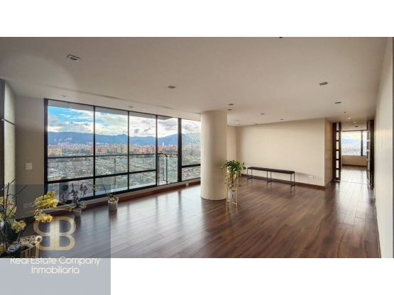 Se vende apartamento de 153 metros, ubicado en un piso 17 con espectacular vista a la ciudad y ascensor privado. El apto cuenta con 3 habitaciones cada una con baño privado, la principal con tina, sala comedor amplia con chimenea y balcón, comedor, baño social, sala de estar, mueble de linos, cocina integral con lavavajillas, zona de ropas independiente, cuarto de servicio con su baño. 2 garajes cubiertos y un depósito. Cuenta con una espectacular vista.