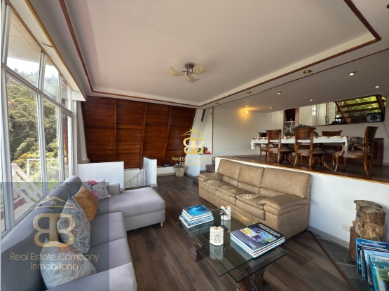 En ella encontrarás tres habitaciones con baño privado, principal con walking closet y balcón, sala con chimenea, comedor independiente, estudio, altillo, cocina amplia y equipada, cuarto y baño de servicio, zona de lavandería y cuatro parqueaderos.